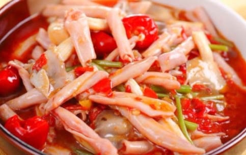 選取肥美的活鵝,拿小刀沿著鵝的肛門劃一圈,再把食指插入鵝的肛門內,然後旋轉,再用力向外拔出。這樣一來就可以取到最新鮮的鵝腸了,但是鵝受到的痛苦實在是……