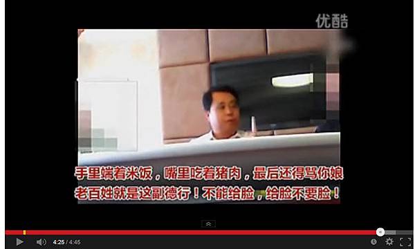「對於老百姓,我可以給你一個解釋。現在老百姓就是手裡端著米飯,嘴裡吃著豬肉,最後還得罵你娘。老百姓就是這副德行!不能給臉,給臉不要臉!」